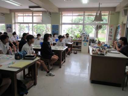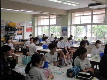 6月20日(火)今日の授業風景 その4 公開日 2023/06/20 更新日 2023/06/20 お知らせ 3年生の美術科の授業です。 作品づくりに入る前に、担当の先生から生徒の心に働きかける話からスタートしています。担当の先生の話を真剣に聞く生徒たち。自分の心を磨き、この後、すてきな作品づくりにつながっていくことでしょう!