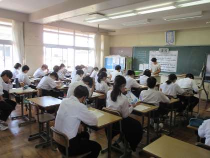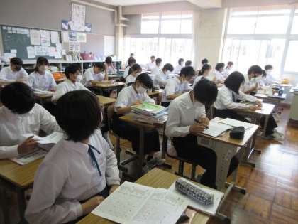 3年生の教室では、机に資料をきとんと用意し、テスト前の確認を集中して行う生徒たちの姿が見られました。(3年生の各教室でこの姿は見られています。)前期中間テスト、みんなで乗り越えていきましょう!