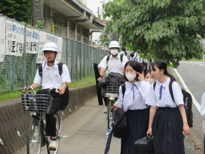 前期中間テストも終わり、通常通りの朝を迎えています。今日は時々雨が降る天気予報が出ています。あいにくの天気の中ですが、今日も1日生徒たちが充実した活動ができるように見守ってまいります。