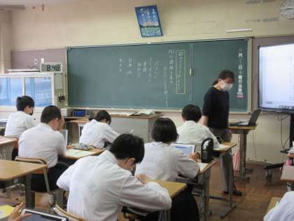 6月22日(木)今日の授業風景 その1 公開日 2023/06/22 更新日 2023/06/22 お知らせ 2年生の国語科の授業です。 「郷土のよさを伝えよう」というテーマのもと学習を進めています。担当の先生から「情報集め」の大切さを伝えられていました。パンフレットや書籍などをどのように記録していくか、生徒たちは実際にやってみます。調べたことから、郷土のよさをどんどん発信してほしいです。