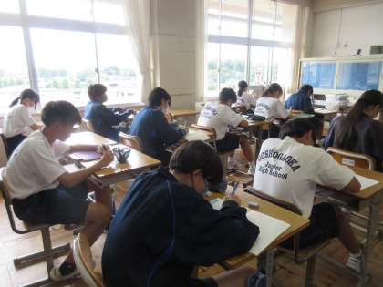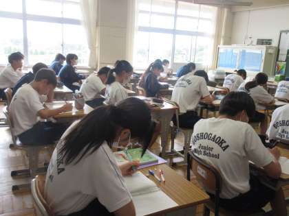 9月7日(木)今日の授業の様子 その1 公開日 2023/09/07 更新日 2023/09/07 お知らせ 2年生の数学科の授業です。 「1次関数のグラフ」について調べる学習を進めています。グラフ用紙を使い、昨年度の学習を振り返りながら、実際にグラフを記入していました。原点やx軸・y軸を確認をしっかり行い、ていねいに作業を進める2年生の姿が印象的でした。