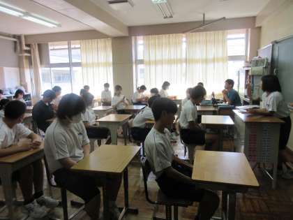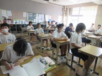 9月11日(月)朝の様子【2年6組の朝の様子】 公開日 2023/09/11 更新日 2023/09/11 お知らせ 学級目標「不言実行 挑戦と協力のクラス」の2年6組。互いに協力し合い、朝の会前には落ち着いた雰囲気でスタートできる体制になっていました。今日の4時間目には、先週金曜日に未実施の「数学科」のテストがあるため、その確認をする生徒の姿も見られました。体育祭や桔梗祭に向け、不言実行で挑戦し、大いに力を伸ばしていってくれることでしょう!