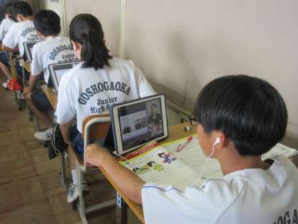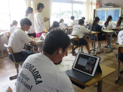 9月11日(月)今日の授業の様子 その1 公開日 2023/09/11 更新日 2023/09/11 お知らせ 2年生の英語科の授業です。 今日の英語の時間は、オンライン英会話にチャレンジしていました。「将来の夢」などをテーマに英語でのコミュニケーションにチャレンジしています。外国の方との個別の英会話体験。生徒たちは自分の思いや考えを伝えようと、熱心に英語で話す姿が印象的でした。