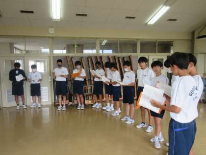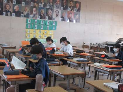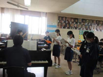 9月11日(月)今日の授業の様子 その4 公開日 2023/09/11 更新日 2023/09/11 お知らせ 2年生の音楽科の授業です。 合唱コンクールに向けた練習を進めています。パートごとに合唱練習を進めていました。3つのグループになり、ローテーションしながら学習を進める生徒たち。桔梗祭に向け、少しずつ各学級で準備がスタートしてきているようです。