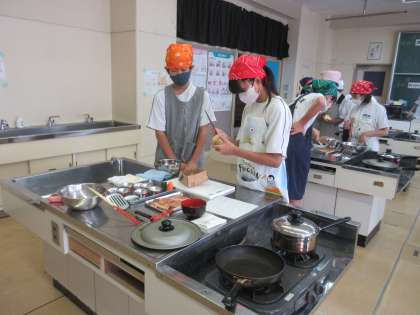 1年生の家庭科の授業の続きです。調理実習に頑張る姿を見て、もう3枚写真を撮ったので公開します。協力して、頑張っていました!