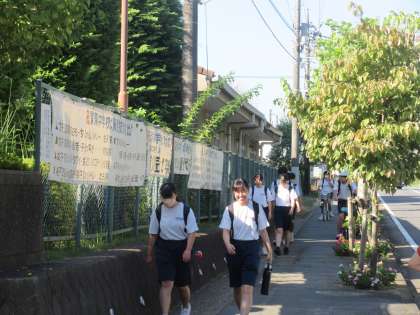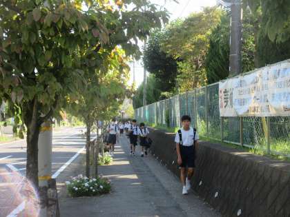9月13日(水)朝の様子 公開日 2023/09/13 更新日 2023/09/13 お知らせ 水曜日の朝を迎えました。今日も朝から残暑を感じます。 本校生徒はそのような中でも、あいさつをしっかりして登校する生徒が多くいます。本校の生徒のよさを今後も伸ばしていきたいです。 今日は「県南新人陸上大会」が実施されています。目標に向かって頑張る生徒たちへの応援、よろしくお願いします。
