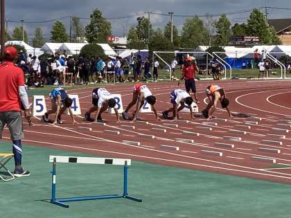9月14日(木)県南中学校新人陸上大会2日目 その1 公開日 2023/09/14 更新日 2023/09/14 お知らせ 昨日に引き続き、県南新人陸上大会が実施されています。今日は、本校からは100m.800m、1500mに出場している生徒がいます。目標に向かって、頑張ってほしいです。応援よろしくお願いします!写真は1年100m予選での活躍の様子です。