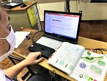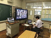 2年生の理科の授業です。画面共有して学習内容を示し,仲間達の表情を確認しながら授業を進めています。
