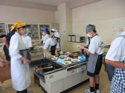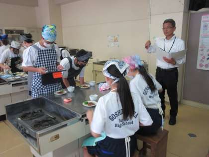 (県南教育事務所のお客様の授業参観時に調理実習の様子も見ていただきました。お客様は本校の全授業を見ていただきましたが、生徒たちが「落ち着いて学習に取り組んでいること」「アットホームな雰囲気で学習に取り組んでいること」など、お褒めの言葉をいただきました。ご助言いただいたことを今後の本校の教育活動に活かしてまいります。ありがとうございました。)