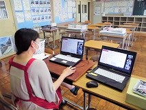 オンライン授業9 公開日 2021/09/03 更新日 2021/09/03 お知らせ 2年生の美術の授業です。スケッチについて画面共有しながら説明したり,画面越しに仲間達の意見を聞きながら授業を進めています。