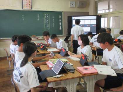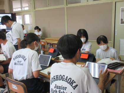 9月15日(金)今日の授業の様子 その5 公開日 2023/09/15 更新日 2023/09/15 お知らせ 2年生の国語科の授業です。 教材文「黄金の扇風機」の学習を進めています。2つの話の主張をタブレットを活用して考える生徒たち。話し合いがとても活発なので、思わず写真を撮ってしまいました。5時間目も頑張る2年生。さすがです!
