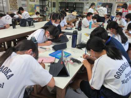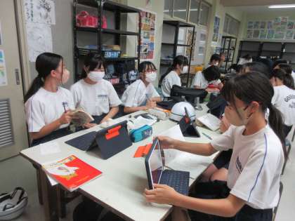 本の紹介をする「POP」の作品づくりにチャレンジしていました。本の内容を伝えようとイラストと文言を大切にして、熱心に作品づくりをしていました。構想の段階から、すてきな作品になる予感がします。根気強く、発想豊かな作品づくりをする美術部への応援、よろしくお願いします。