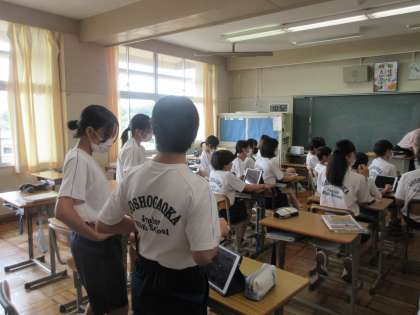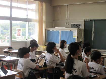 教室を訪問した時は、「守谷市に関するクイズ」にチャレンジしているところでした。守谷市の鳥は?守谷の木は?守谷の野鳥に道は?・・・。次々と出題される問題に取り組む生徒たち。楽しみながら、地域のことへのイメージを広げていました。