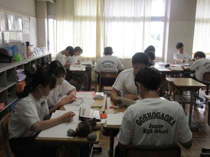 古今和歌集や新古今和歌集について学習を進めていました。情景・心情・技法について、グループで考える生徒たち。資料を見ながら楽しく学習に取り組む姿を見て、うれしく感じました。課題解決に向け、頑張る3年生です!