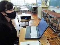 2年生の音楽の授業です。鑑賞の授業です。仲間達は真剣に聴き入っています。