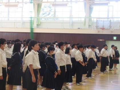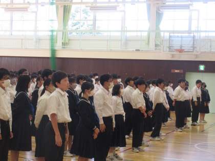 前期終業式の様子です。3年生は体育館に集まり、1・2年生はオンラインでの終業式です。終業式の中の生徒たちの「前期を振り返り」では、それぞれの学年にあった話があり、心が温かくなりました。後期に向け、気持ちを切り替える機会となりました。