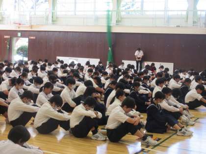 2・3年生は授業日が100日の前期が、今日で終わります。10月10日から後期が始まります。前期の終業、後期の始業に当たる節目の日にあたり、校長先生から話をします。