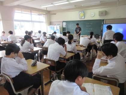 10月10日(火)学級旗紹介【2年4組の様子】 公開日 2023/10/10 更新日 2023/10/10 お知らせ 2年4組の朝の様子です。朝の会が始まる時刻に合わせて、落ち着いて雰囲気で着席して待つ生徒たち。9月に校舎改修のため、教室を移動しましたが、スムーズに変更された教室での生活が送れています。2年4組の学級旗は、「チーム一丸となる!」というイメージからつくりあげられています。中央の虎の迫力に圧倒されます。力強く前進する2年4組です。