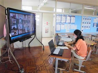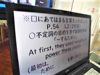 2年生の英語の授業です。今日は不定詞について画面共有を効果的に活用しながら学んでいます。
