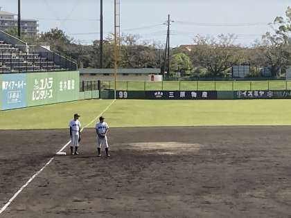 J:COMスタジアムでは、本校野球部とけやき台中野球部の合同チームで、11時から第1試合目に臨みます。試合前のシートノックにも力が入る御所中、けやき台中の合同チームです。応援よろしくお願いします!