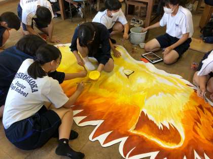 放課後は部活動とともに、桔梗祭に向けた準備も進められています。桔梗祭美術班の活躍です。どんな作品になるか楽しみになります。それぞれの場所で頑張る生徒たちです。