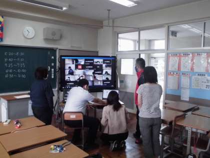 先生方は,教科の壁を越えてオンライン授業でのスキル獲得をしています。先生方からオンライン授業に入り,生徒目線で様々なスキルを自主的に身につけています。疑問点があると,授業現場に出向いて,授業者に「どうやってるの?」と確認しています。