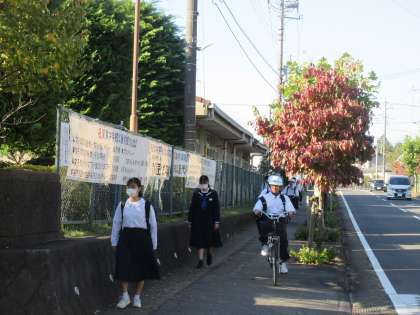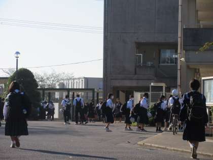 桔梗祭向け、朝の合唱練習に取り組むクラスもあり、登校する時間が全体的に早い生徒がおおいです。さわやかなあいさつをして正門を通り過ぎる生徒たち。今日も頑張っていきましょう!
