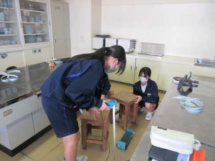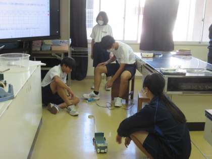 10月17日(火)今日の授業の様子 その6 公開日 2023/10/17 更新日 2023/10/17 お知らせ 3年生の理科の授業です。 「運動の向きに力を受けていない物体はどのような運動をするか」をテーマに学習を進めています。台車を使った実験に、グループで協力して取り組む生徒たち。正確な記録を出そうと、集中して実験に取り組んでいました!素晴らしい!
