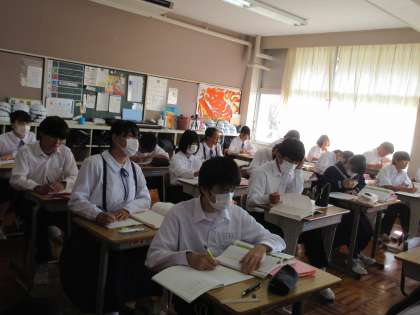 10月18日(水)今日の授業の様子 その4 公開日 2023/10/18 更新日 2023/10/18 お知らせ 2年生の国語科の授業です。 「助動詞の役割」をテーマに学習を進めています。「・・・れる」「・・・られる」の使われた文章をもとに、受け身・可能・自発・尊敬など、助動詞のイメージを広げる生徒たち。実際に使う文章から、本時の課題に迫る生徒たちです。