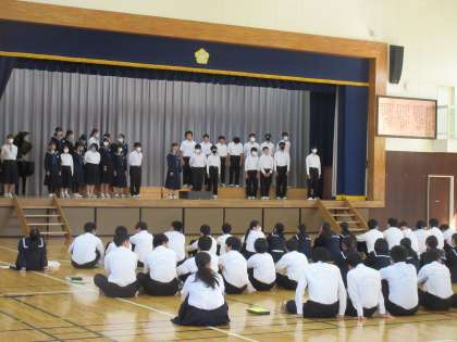 10月18日(水)今日の授業の様子 その7 公開日 2023/10/18 更新日 2023/10/18 お知らせ 3年生の合唱コンクールリハーサルの様子です。 まずは、発表の順を決める3年生。自分たちで決めることで、本番への意識も高まります。その後は、入退場の練習です。しっかり確認し、リハーサルへと続いていきます。