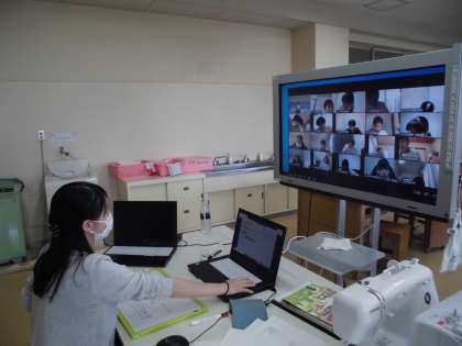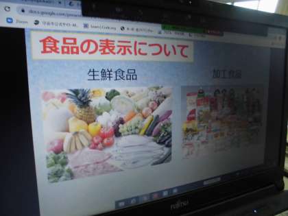 1年生の家庭科の授業です。今日は食品についての学びです。画面共有を効果的に活用しています。