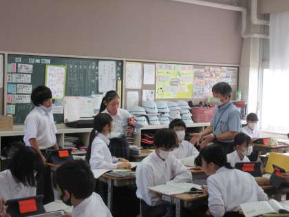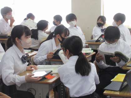 10月20日(金)今日の授業の様子 その5 公開日 2023/10/20 更新日 2023/10/20 お知らせ 1年生の英語科の授業です。 「友達の紹介スピーチをしよう」というテーマのもと学習を進めています。「dose he〜」「do you〜」などの言葉を活用しながら、紹介スピーチに積極的にチャレンジする生徒たちです。
