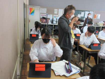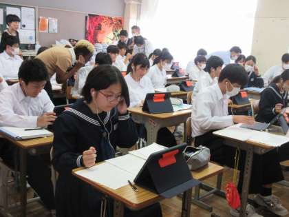 石垣島のポピュラーな食事を聞くなど、積極的に英語で質問する生徒たち。英語での会話に進んで取り組む姿がたくさん見られました。