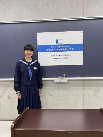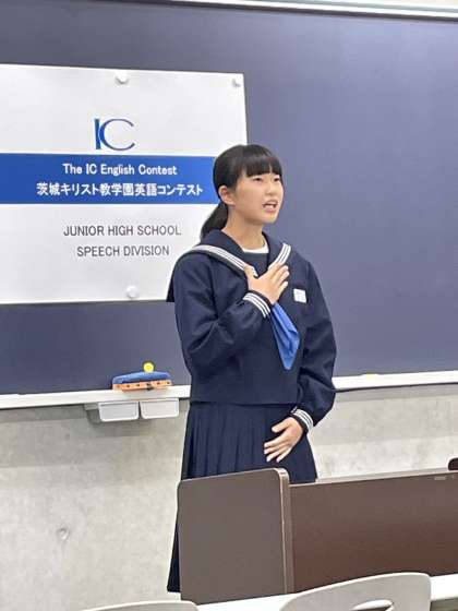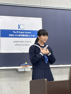 10月20日(金)茨城キリスト教学園英語コンテストに出場 公開日 2023/10/20 更新日 2023/10/20 お知らせ 本日、茨城キリスト教学園英語コンテストに参加し、活躍した生徒の紹介です。スピーチタイトルはクリスマスカード〜国境を越えて〜です。トップバッターでしたが、原稿内容を全て暗記していて、気持ちを込めてスピーチしていました。素晴らしかったです!