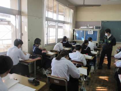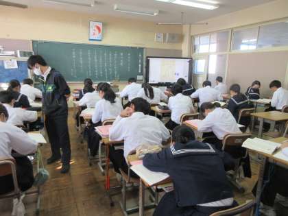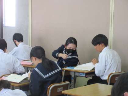 10月24日(火)今日の授業の様子 その2 公開日 2023/10/24 更新日 2023/10/24 お知らせ 2年生の国語科の授業です。 助動詞の学習も進み、今日は文章を読み、その文に中の助動詞の分類にチャレンジします。文章に線を引きながら、また、資料を振り返りながら今日の課題に取り組む生徒たち。集中して課題に取り組む姿や近くの友達と考えを交換し合う姿が見られる時間でした。