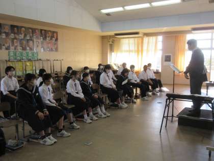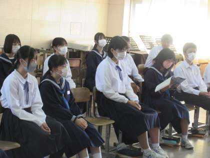 音楽の授業の中で、合唱練習に取り組む2年生。担当の先生からの助言を大切に聞き、自分たちのものにしていこうとする気持ちが伝わってきました。生徒たちの真剣な表情。その時その時を大切にする生徒たちです!