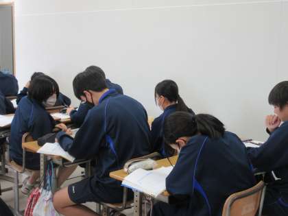 10月24日(火)今日の授業の様子 その6 公開日 2023/10/24 更新日 2023/10/24 お知らせ 3年生の数学科の授業です。 「y=ax²の変域をどのように求めればよいか」という課題のもと学習を進めています。簡単なグラフをかき、xの変化を確認し、自分の力で、また近くの友達と考えを交流させながら問題に取り組む姿が見られています。頑張っていました!