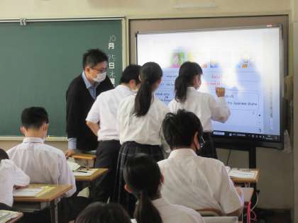 10月25日(水)今日の授業の様子 その5 公開日 2023/10/25 更新日 2023/10/25 お知らせ 1年生の英語科の授業です。 「文法の振り返り」をしています。ワークを活用したり、電子黒板を活用したりしながら、これまでの学習を根気強く整理する生徒たちです。頑張っていました。
