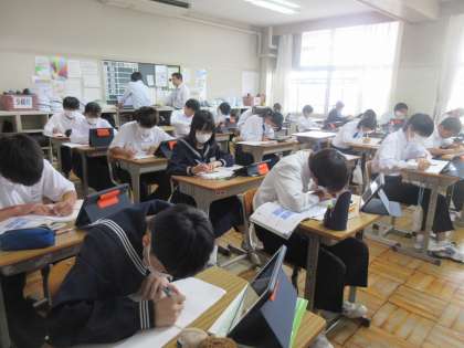 10月25日(水)今日の授業の様子 その8 公開日 2023/10/25 更新日 2023/10/25 お知らせ 2年生の理科の授業です。 「プラス極を出た電流は」というテーマのもとに、回路をノートにていねいにかきながら学習を進める生徒たち。直列回路や並列回路へのイメージを広げていました。この後、実験に取り組み、さらにイメージを広げていくことでしょう!