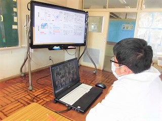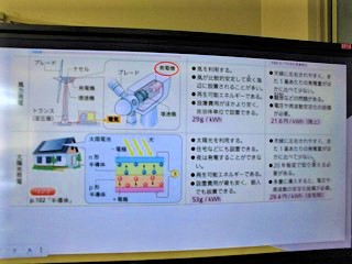 2年生の技術の授業です。電力についての学びです。画面共有を有効的に活用しながら説明しています。