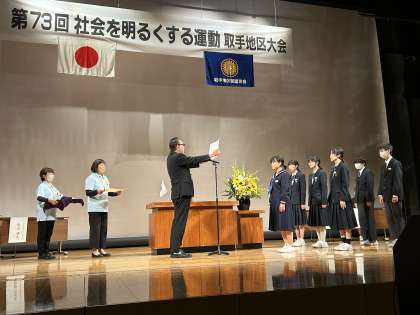 10月25日(水)社会を明るくする運動作文コンテスト表彰 公開日 2023/10/25 更新日 2023/10/25 お知らせ 本日、もりりん中央にて、社会を明るくする運動作文コンテスト表彰が行われました。本校からは、2年生の生徒が参加し、表彰を受けました。作文の題は「笑顔の種」です。生徒たちの考えを生かし、社会を明るくする取組を進められる社会にしていきたいものだなと思いました。