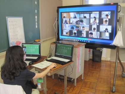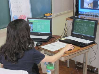 3年生の理科の授業です。映像を見ながら実験のまとめを行っています。