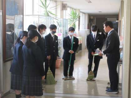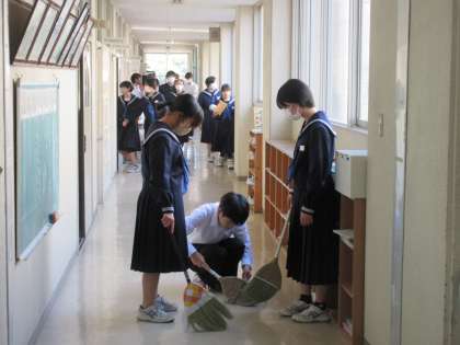 11月13日(月)朝清掃 その2 公開日 2023/11/13 更新日 2023/11/13 お知らせ 清掃活動のまとめは、担当場所の先生との確認と反省です。「場を清め・・・」を大切にする本校生徒たち。生徒たちの頑張りで、1日のスタートを気持ちよく切ることができます。