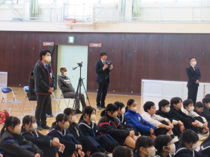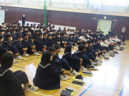 11月14日(火)3年2組のための合唱コンクール その3 公開日 2023/11/14 更新日 2023/11/14 お知らせ 2組の合唱を聴く生徒たち。みんな素敵な表情でした。3年生全体で、2組を応援している思いが伝わってきました。多くの先生方も応援にきてくれています。