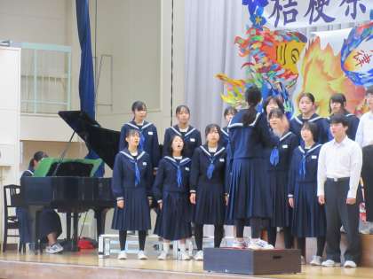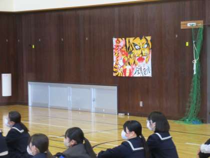 11月14日(火)3年2組のための合唱コンクール その4 公開日 2023/11/14 更新日 2023/11/14 お知らせ 3年2組の学級旗も体育館には飾られ、2組のみんなを励ましているように感じました。言葉では表現できないくらい心にしみる素敵な合唱でした!(3年生の皆さん。応援ありがとう!)