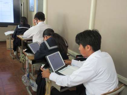 11月14日(火)今日の授業風景 その3 公開日 2023/11/14 更新日 2023/11/14 お知らせ 2年生の理科の授業です。 電力の学習を活かして、家庭での電力使用量などについて調べる計画を立てています。自分の生活と関連させながら、電力についてのイメージを広げていく生徒たちです。1日の使用量どのくらいかな?の疑問を追究する生徒たちです。