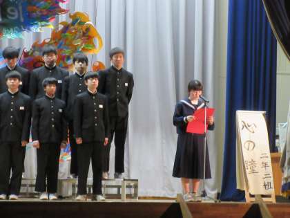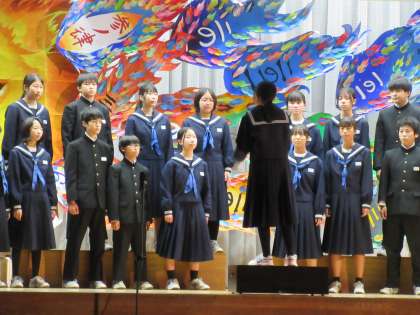 2年2組は「心の瞳」の合唱を披露してくれました。