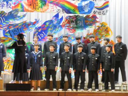 合唱曲から、夢や希望に向かっていくことを表現しようと考え、クラス全員で情熱・団結し、困難を乗り越えてきた素敵な歌声を響かせてくれました。