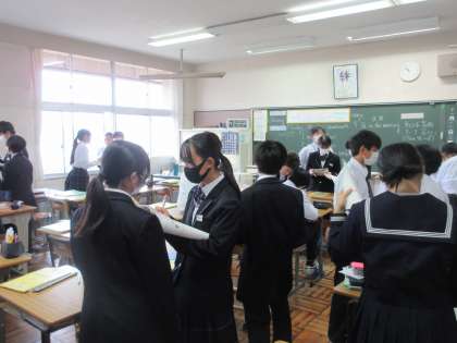 11月17日(金)今日の授業風景 その3 公開日 2023/11/17 更新日 2023/11/17 お知らせ 1年生の英語科の授業です。 「When`s you birthday?」から英会話を始める1年生。今日は、誕生日を尋ねるところから始め、誕生日にほしいものを質問する英会話にチャレンジしていました。担当の先生と英会話の練習にしっかり取り組んだので、友達との英会話もスムーズです。生き生きと活動する1年生です!