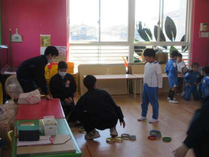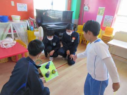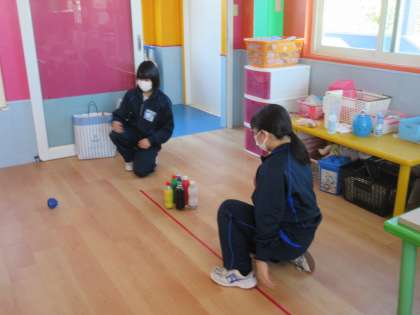 11月20日(月)もりや幼保園での保育実習 その1 公開日 2023/11/20 更新日 2023/11/20 お知らせ 3年生の保育実習の様子です。 これまで準備をしてきた「安全で楽しいおもちゃ」を活用しての保育実習。園児とのふれあいを楽しみながら活動する本校の生徒たちです。